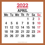 April 2022 Monthly Calendar, Printable Free, Beige, Monday Start