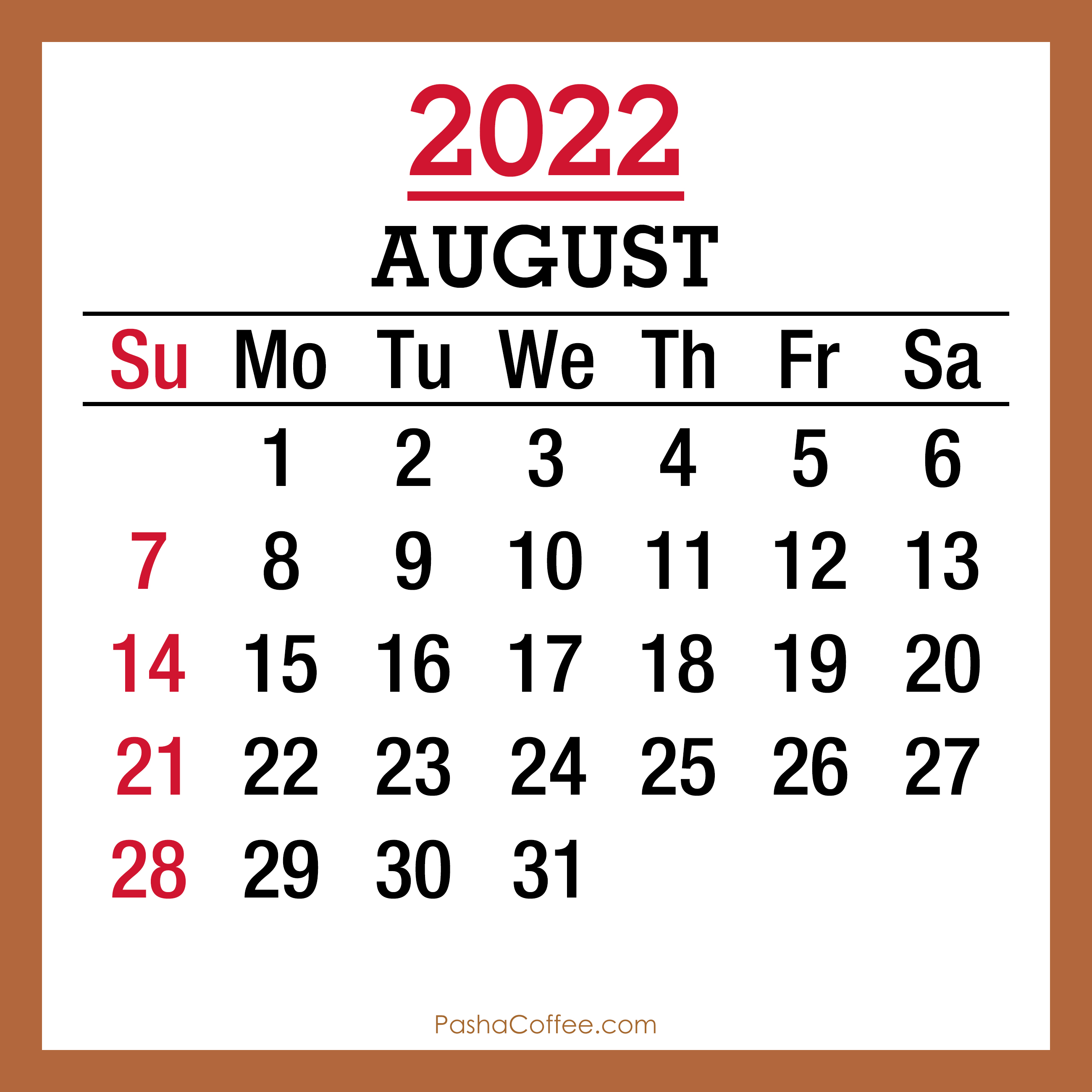 August 2022 Monthly Calendar, Printable Free, Beige, Sunday Start