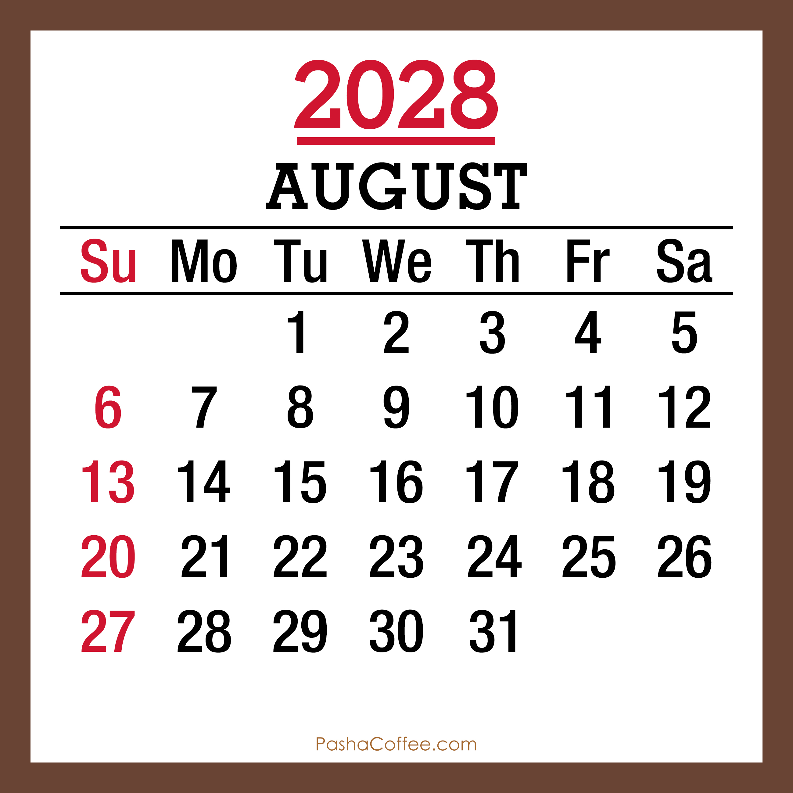 August 2028 Calendar with US Holidays – August 2028 Planner