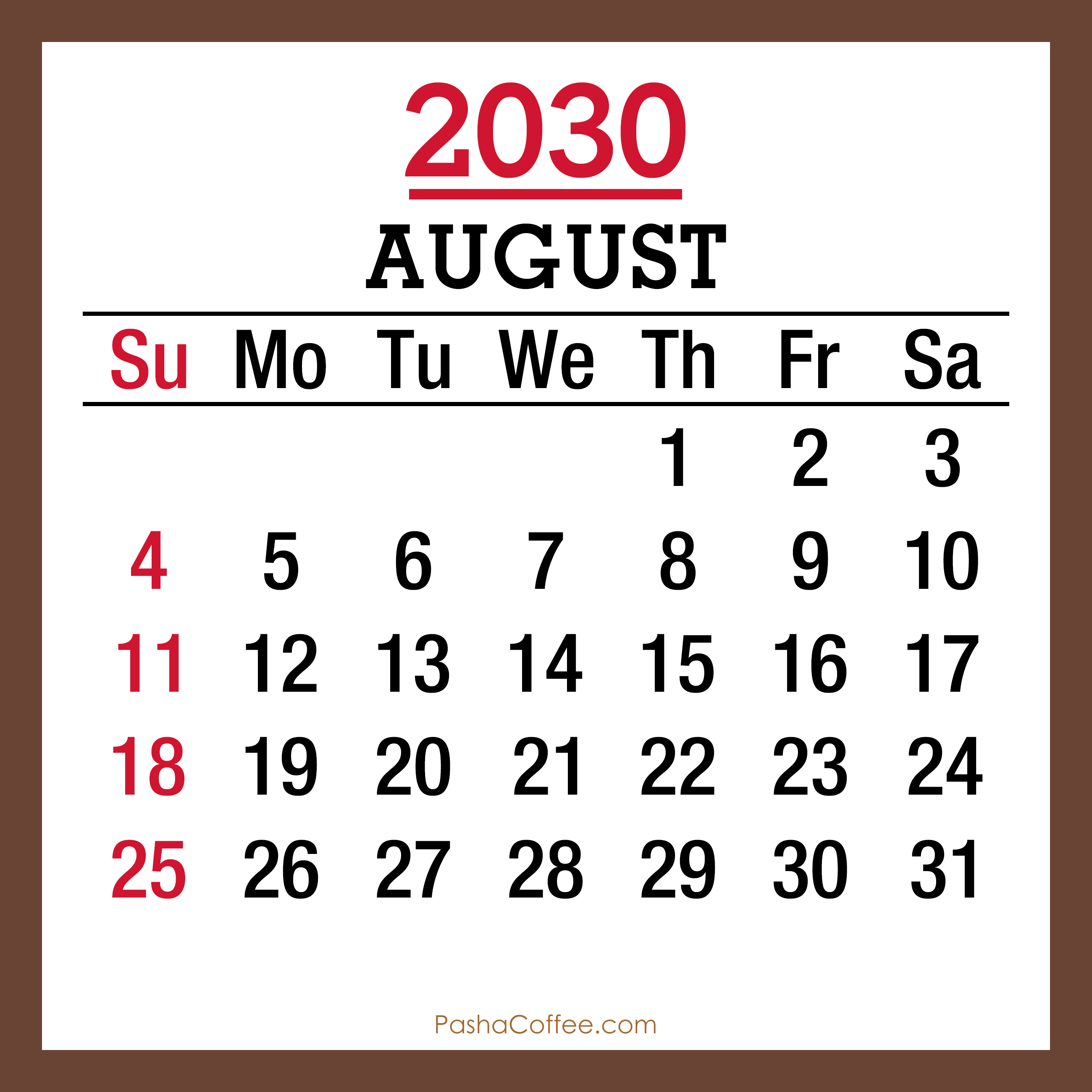 August 2030 Calendar with US Holidays – August 2030 Planner