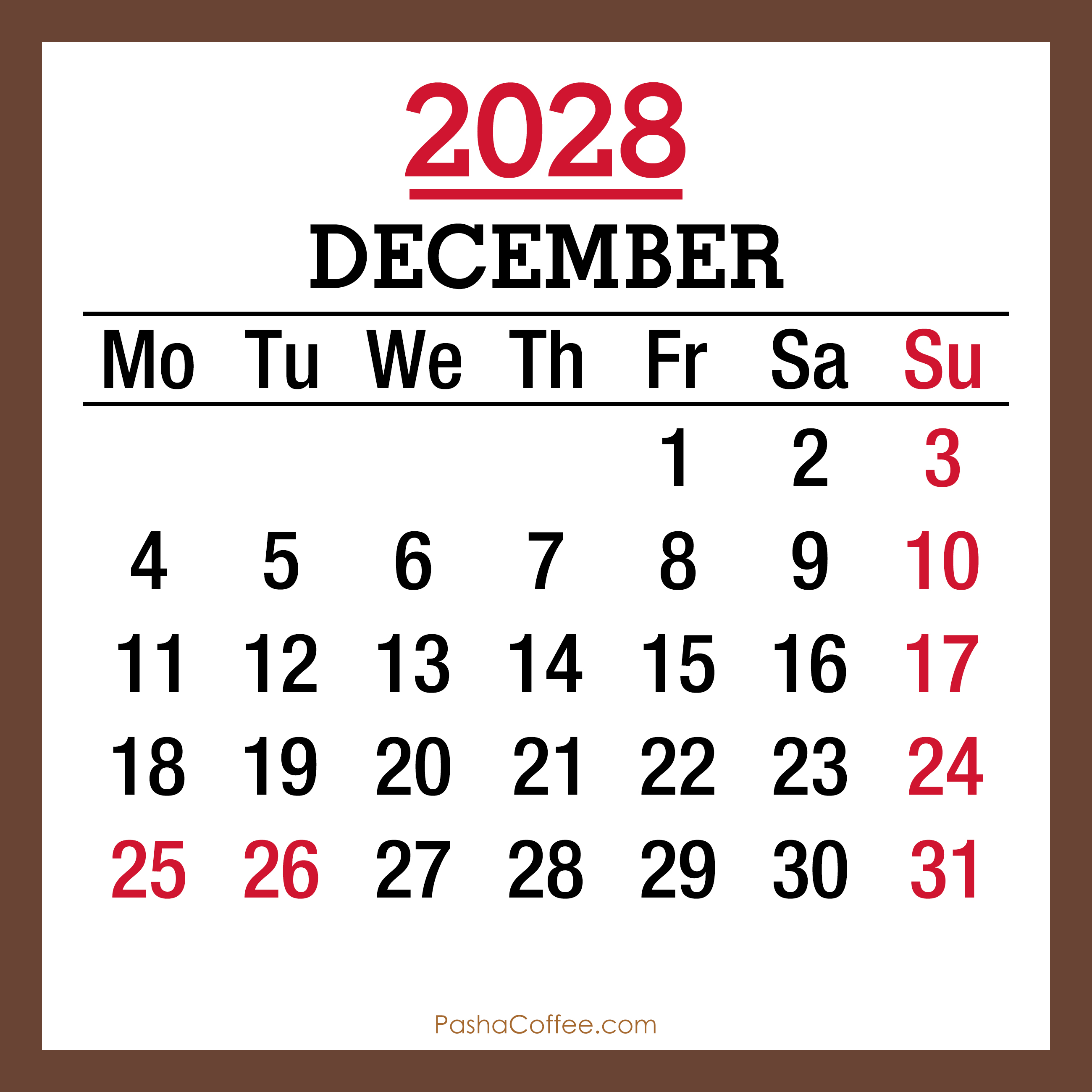 December 2028 Calendar with UK Holidays – December 2028 Planner
