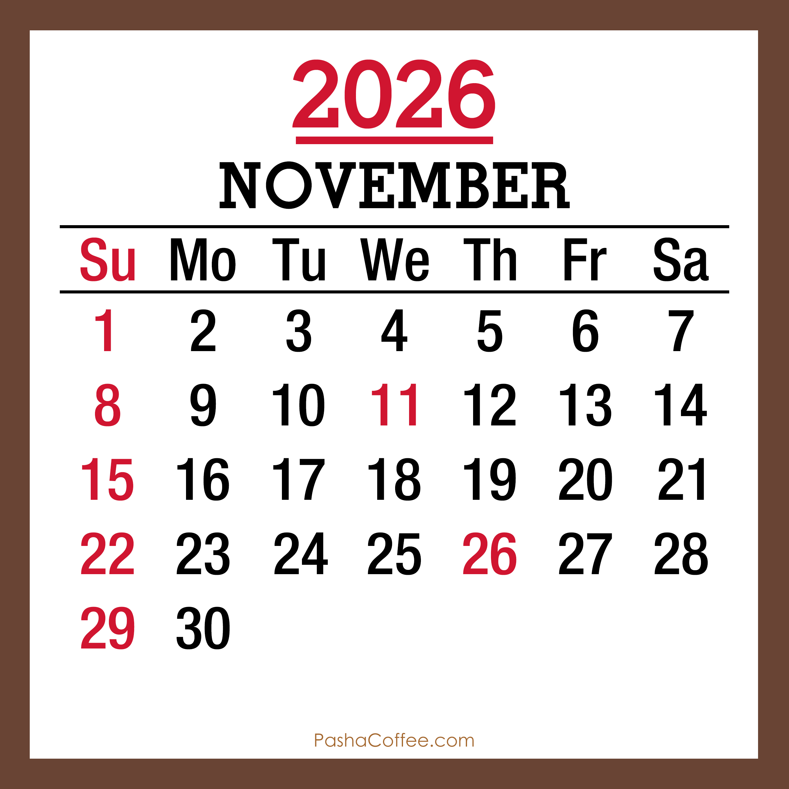 November 2026 Calendar with US Holidays – November 2026 Planner